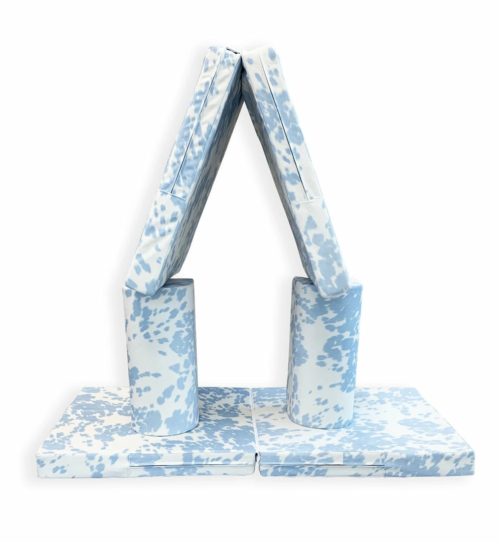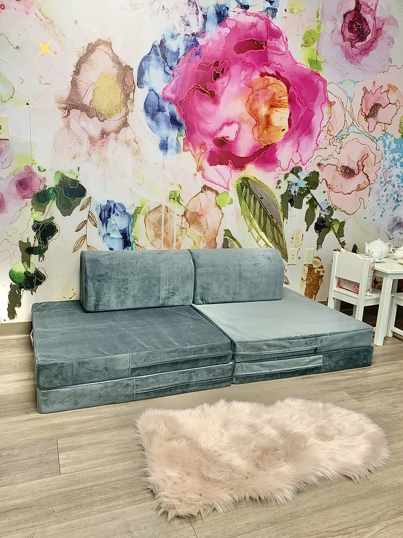 Let kids climb, build, and crash onto professional rock climbing landing mat foam in a modular play couch. Crash Couch is a stylish modular furniture play set where kids can read, jump, build, or relax. The Crash Couch is a four piece collection made in a Women-Owned family factory in Columbus, OH. Each component of our kids’ play couch is handpicked to create a perfect balance of stye and durability. Crash Couch is a play couch that is impact safe, and kid proof. We provide landing mats for professional athletes and performers nationwide and feel that your children deserve the same high quality and reliability. The polyurethane foam used in each Crash Couch soft play sofa is the same that we use in our commercial grade landing mats for gymnastics facilities, rock climbing clubs, and aerial arts gyms.